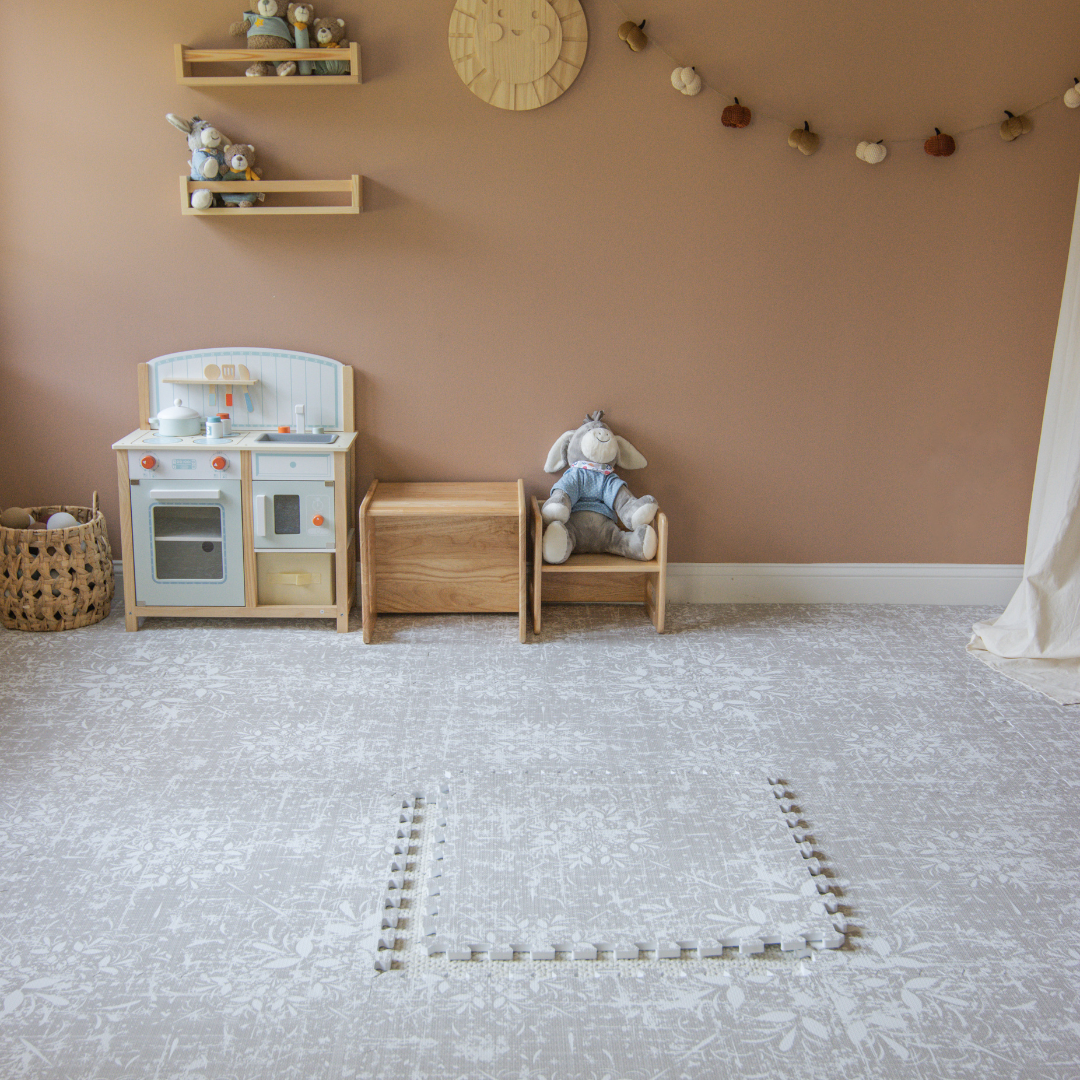 Our new Flower Garden range of mats, look like a Persian carpet but offer the durability of a foam play mat. The gorgeous and neutral dark beige colour is perfect for those wanting a play mat to match any part of their home.
